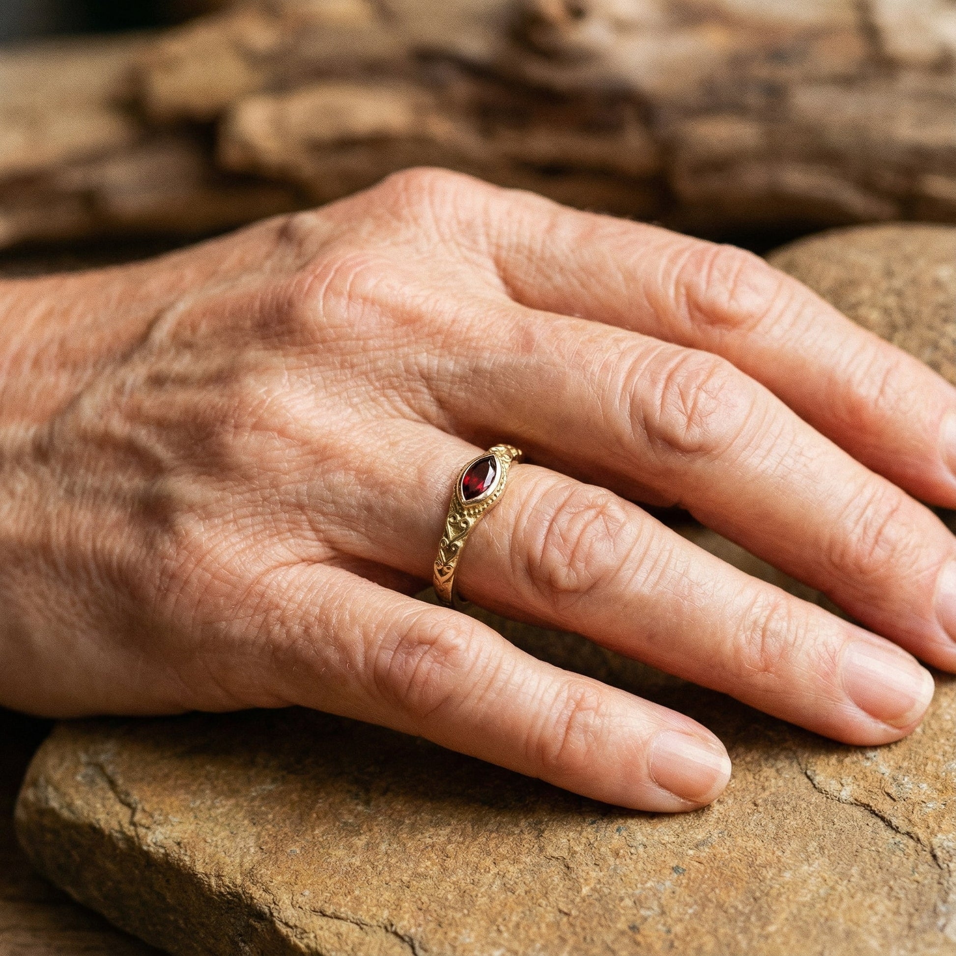 Vintage Guld Ring med Rød Krystal